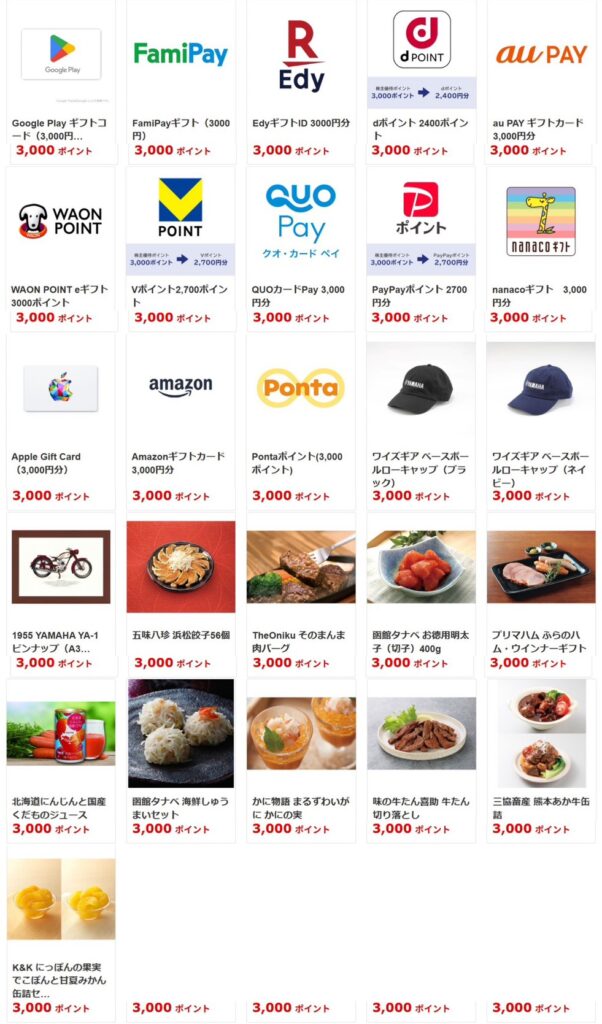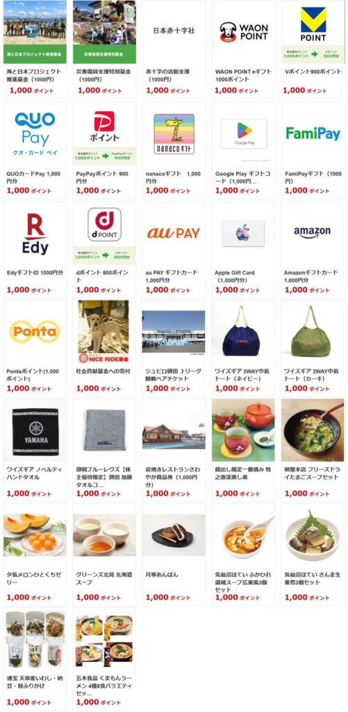1,000ポイントの交換枠にはありませんでした😭