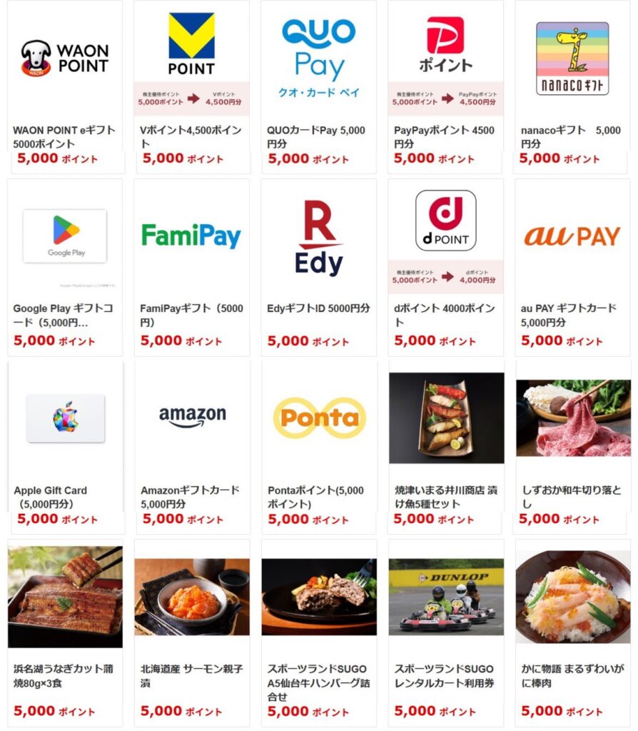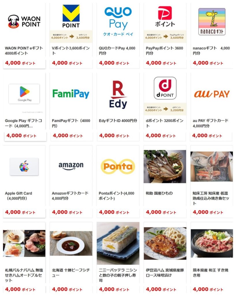 2026年時点の優待品一覧