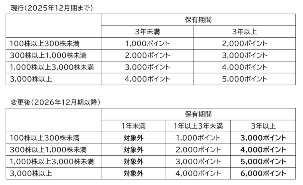 100株保有の場合、長期保有すると優待が3倍にアップします。